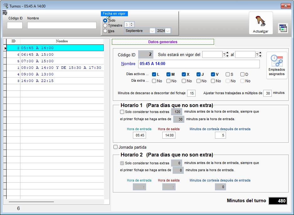 - Calendarios y horarios de trabajo por centros de trabajo, turnos y empleados.