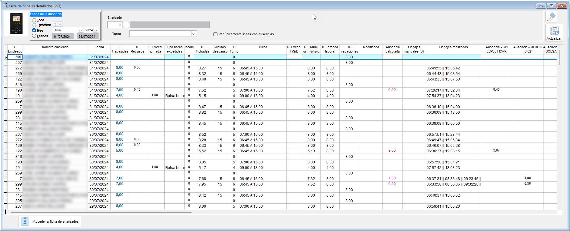 Fichajes detallados